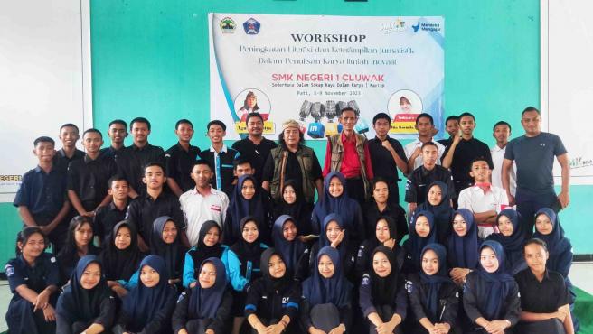 Pati, Suara Journalist KPK - Dalam rangka memperingati Bulan Bahasa Tahun 2023, SMK Negeri I Cluwak, Kabupaten Pati Jawa Tengah menyelenggarakan kegiatan Workshop Peningkatan Literasi Ketrampilan Jurnalistik Dalam Penulisan Karya Ilmiah Inovatif, yang telah dilaksanakan pada Kamis (9/11), bertempat di Aula SMK Negeri I Cluwak, Jalan raya Pati – Kelet, Kabupaten Pati. Kegiatan workshop tersebut diisi dengan pelatihan dasar jurnalistik yang diikuti 60 siswa dari berbagai kelas dan jurusan sekolah yang ada di SMK Negeri I Cluwak. Adapun pemberi materi dalam pelatihan jurnalistik tersebut adalah Agus Prasetyo Mdh Pemipinan Redaksi media Koran Pemberita Korupsi-Suara Journalist KPK (SJ-KPK) Jakarta, didampingi oleh Drs. Muharam. NS. Adapun materi pelatihan yang diberikan adalah mengenai praktek penulisan berita di media cetak dan ketentuannya.