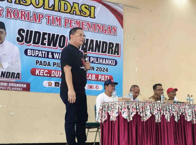 Target prolehan 80% suara se kabupatehn Pati, Sudewo – Candra diusung oleh koalisi partai besar tanah air diantaranya partai Gerindra, PKB, dan PSI. Tim konsolidasi dan strategi pemenangan Sudewo – Chandra memperkuat basis dukungan di daerah Pati Utara diantaranya Kecamatan Dukuhseti. Menjelang pemilihan yang akan digelar pada 27 November 2024 mendatang.
