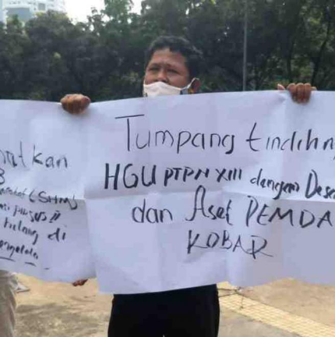 Tujuan utama saya datang kesini adalah menyampaikan aspirasi kepada menteri BUMN Erick Thohir, Kami menuntut penyerahan Sertifikat Tanah dari PTP Nusantara XIII Kebun Kumai, Desa Agra Mulya Kecamatan Pangkalan Banteng Kotawaringin Barat ucapnya.