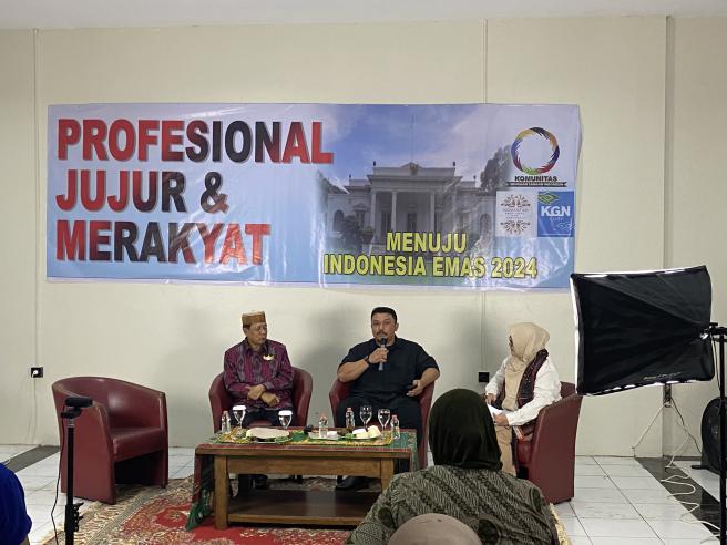 Jakarta - Komunitas Genggam Tangan Indonesia yang menggelar Diskusi dengan tema "Profesional Jujur dan Merakyat Menuju Indonesia Emas 2045", adapun Sub Tema yang diangkat dalam diskusi kali ini adalah "Milenial Perkuat Pertahanan Negara" acara Bincang sore ini di helat di DPP Gerindra, tepatnya di Aula Koperasi Garudayaksa Nusantara atau KGN Jakarta pada hari Rabu,(26/6/2024).