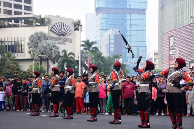 Jakarta, Gelaran Car Free Day (CFD) merupakan agenda rutin pemerintah provinsi DKI Jakarta. Acara car freeday atau hari bebas kendaraan sellau di gelar di kawasan MH Thamrin, Jakarta Pusat, Minggu 28 April 2019. Dalam rangka memeriahkan Hari Kartini yang jatuh pada 21 April 2019. Sejumlah Polisi wanita (POLWAN) Direktorat Lalu Lintas Polda Metro Jaya memamerkan atraksi kolone bersenjata.